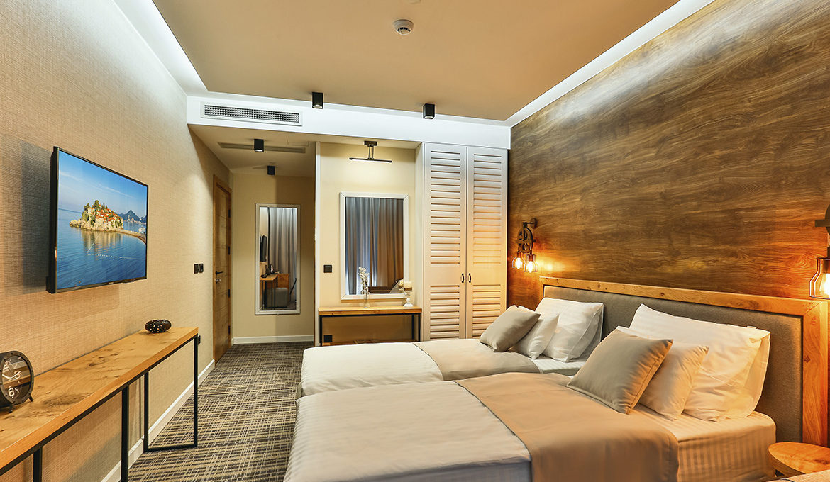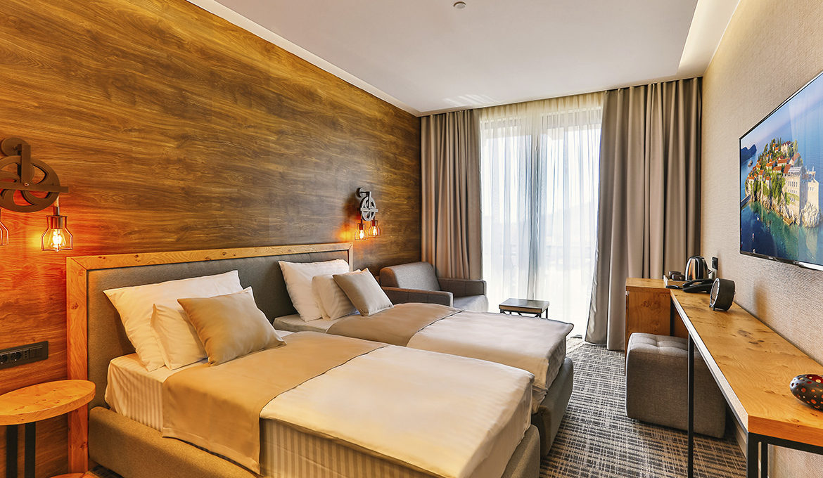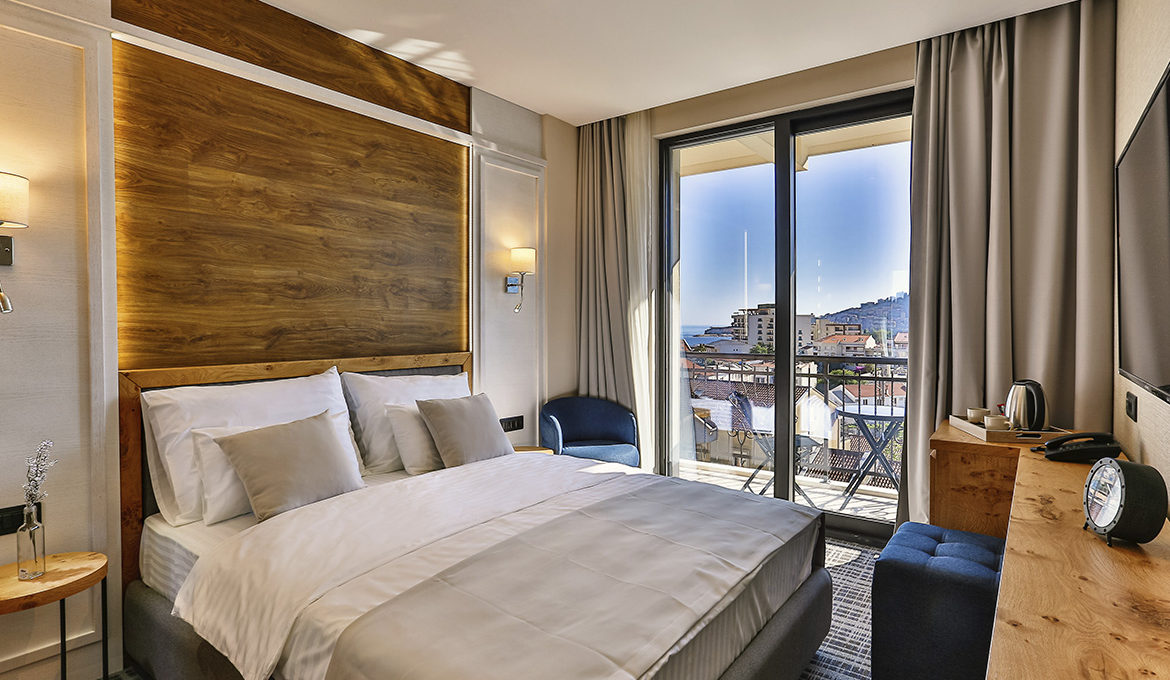 Il Boutique Hotel Tate è una struttura moderna e lussuosa situata a Budva. Si trova a soli 300 metri da una delle spiagge più belle di Budva, spiagge slovene. L'hotel è stato aperto nell'estate del 2020. Eleganza, raffinatezza e comfort sono le caratteristiche del suo design. Gli ospiti hanno a disposizione la connessione WI-FI gratuita in tutta la struttura, così come il parcheggio di fronte alla struttura. È inoltre disponibile un garage dell'hotel, raggiungibile scendendo con l'ascensore per auto. L'hotel dispone di una parte chiusa del ristorante dove viene servita una colazione a buffet e durante il giorno o la sera potrete provare le specialità locali e internazionali del nostro chef. In loco è disponibile una piscina all'aperto con lettini prendisole. Accanto alla piscina c'è una sauna e una jacuzzi per 5 persone. Per gli ospiti che desiderano mantenere la propria forma fisica, c'è una palestra, completamente attrezzata per un allenamento di qualità.Sistemazioni