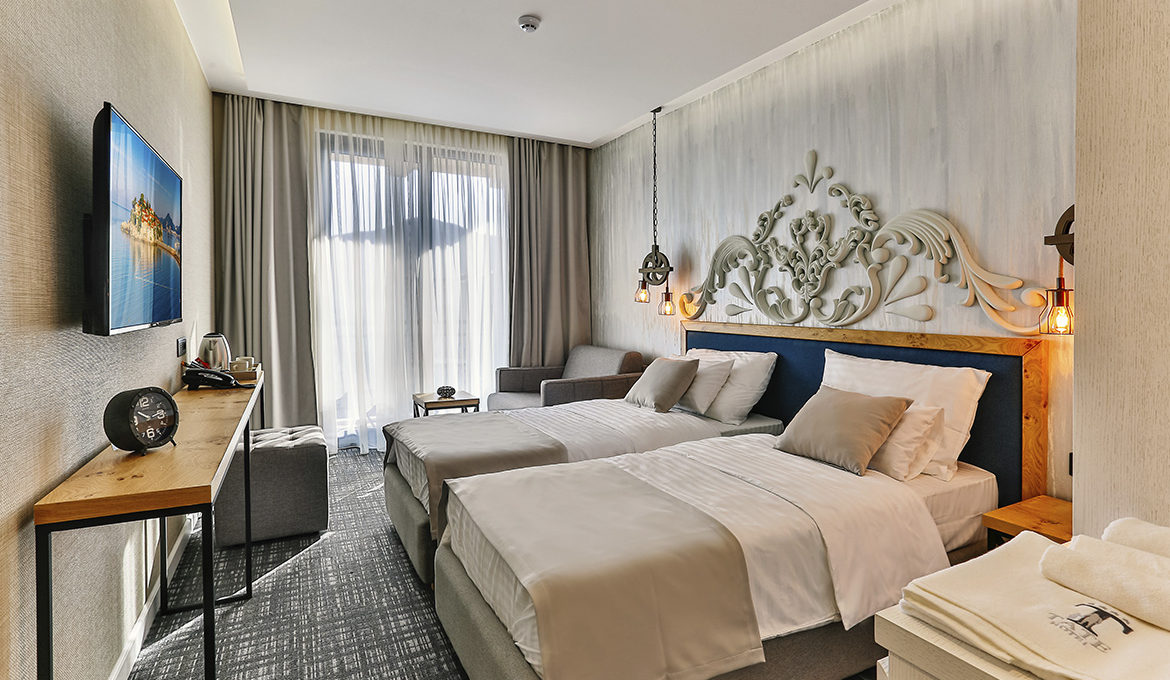 sistemazione nella tipologia di camera selezionata, colazione o mezza pensione (colazione a buffet e cena a buffet o scelta tra diversi menù, a seconda del numero di ospiti in hotel), bevande durante la colazione (acqua, caffè, tè, tutto dal distributore), Wi-Fi, utilizzo della piscina esterna (in base alle condizioni meteorologiche), parcheggio (in base alla disponibilità).La quota non comprende