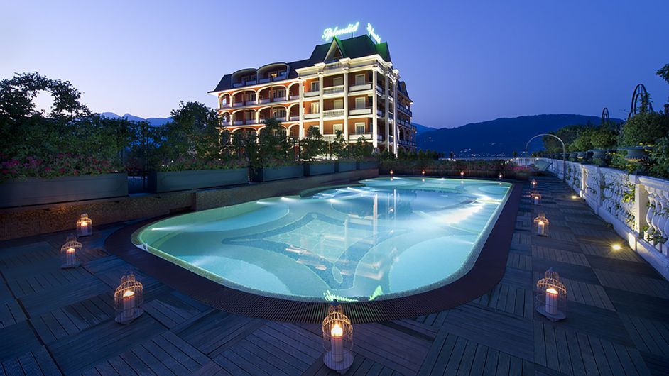 - l'Hotel dispone di circa 102 camere con suite e presidential suite, spaziose e arredate con cura dei dettagli. - Le camere possono essere prenotate in Room only oppure in Bed & Breakfast - Ristorazione: nel ristorante dell'Hotel, le creazioni dello Chef e del suo tem di alto profilo danno vita a un'esperienza fantastica. La prima colazione, snack lunch e le romantiche cene vengono serviti anche nella magnifica terrazza affacciata sul lago Maggiore. - Il Bar si apre sulla "piazzetta" ampio e accogliente con panorama incantevole. Vengono allestiti anche rinfreschi e piccoli ricevimenti - Centro congressi: 7 sale riunioni eleganti e funzionali, sale ampie e luminose pronte ad accogliere fino a 150 persone - Piscina esterna dotata di lettini e ombrelloni. Aperta dalle ore 08:00 alle ore 20:00 da metà maggio a metà settembre - Spiaggia privata ad uso esclusivo degli ospiti - Giardino che circonda l'hotel con pontile che accoglie motoscafi e piccoli battelli. - Zona wellness con Grotta di sale, vasca idromassaggio, sauna e bagno turco, palestra e possibilità di massaggi personalizzati a pagamento - Parcheggio e Garage a pagamento - Culla a pagamento, direttamente in hotel - Cani ammessi, a pagamento, direttamente in hotel (non ammessi al ristorante o a bordo piscina)Camere