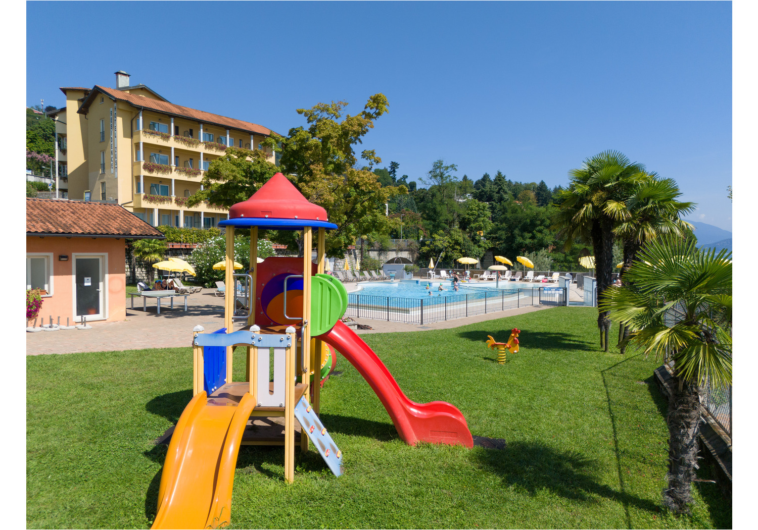 Tra i suoi servizi troviamo: Piscina all’aperto panoramica con solarium, Spiaggia privata accessibile tramite sottopassaggio, Giardino con area relax e giochi per bambini, Parcheggio e garage gratuiti (posti limitati), stanza dei giochi e lavanderia a gettoni.